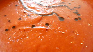 پوره گوجه فرنگی را به همهی مواد اضافه کنید و همه را با مخلوطکن، مخلوط کنید.